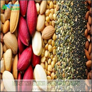 To treat amino acid deficiency in birds, you’ll need to focus on balancing their diet with the right protein levels and essential amino acids.