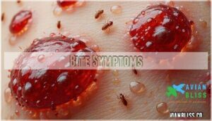 For relief, consider using soothing skin creams to alleviate itch intensity that grows progressively worse, creating persistent skin irritation that signals a bird mite infestation requiring immediate mite identification.