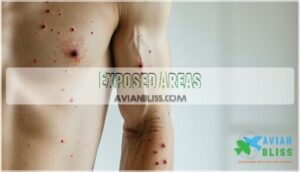 Don’t think clothing protection guarantees safety from bird mites. These persistent parasites crawl under fabric to reach your skin, causing torso bites and thigh bites even in covered areas.