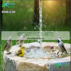 Keep water shallow, place it near shrubs for safety, and clean it often to guarantee freshness and appeal.