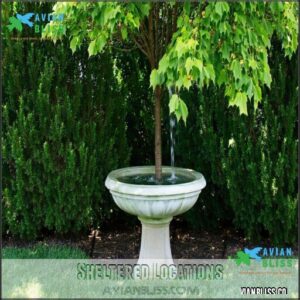 A sheltered location can make your bird bath more inviting while protecting birds from predators and harsh weather exposure.