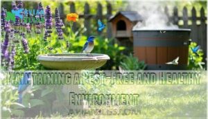 - Disease Prevention: Clean birdbaths weekly and remove old nesting materials to prevent bacterial growth and parasites