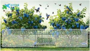 Smart shrub placement strategies involve considering seasonal berry availability and spacing for ideal foraging access.