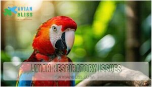 You’ll need to examine both your bird’s nutrition and its surroundings to identify and eliminate these potential threats before they compromise your feathered friend’s respiratory health.
