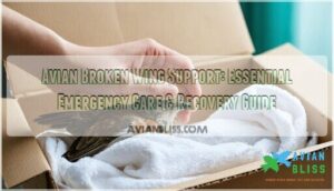 Proper avian broken wing support starts with gentle handling and creating a calm environment. You’ll need to approach slowly, use gloves if possible, and place the injured bird in a ventilated box lined with soft towels.