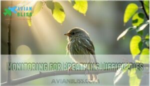 Look for gasping signs, open-mouth breathing, or rapid respiratory rate changes.