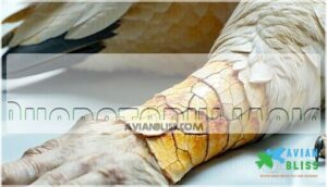 Rhodotoruliasis often targets raptors’ skin, causing greasy, crusty lesions. You’ll spot cracked, discolored patches that need immediate care.