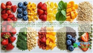 Proper macronutrient ratios create energy balance in your avian diet. Most birds thrive when pellets form the foundation, supplemented with appropriate protein sources, carb types, and healthy fats.