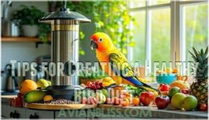 By establishing regular feeding times and maintaining clean dishes, you’re setting the foundation for ideal avian health that will keep your feathered friend thriving for years to come, with consistent routines being key to their well-being.