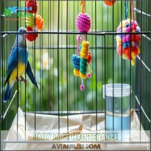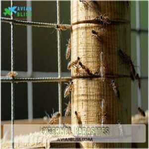 Remember, environmental stressors like dirty conditions make your feathered friend more susceptible to cage pests, and proper waste management is crucial.