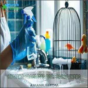 Wash your hands before and after handling birds—handwashing importance can’t be overstated.