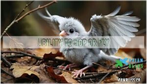 Watch for wing development – baby birds will practice flapping motions even before achieving true flight.