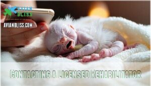 You’ll need to contact a wildlife rehabilitator immediately—their specialized care gives the bird its best chance at recovery.