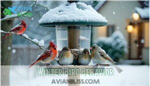 You’ll notice birds change their habits dramatically when winter arrives, forming flocks to find food more easily and watch for danger together.