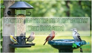 You’ll discover that matching your feeder design to your target birds makes all the difference between an empty feeder and a bustling bird restaurant.