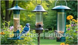 - You’ll attract more birds to your Virginia backyard by offering a variety of food sources, including different types of feeders stocked with seeds like sunflower, suet, and millet that cater to specific bird species.