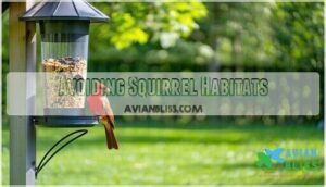 Choose areas near trees or shrubs for shelter, but far enough from squirrel habitats for added protection.