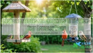 You’ll find these ten feeders work best for attracting cardinals to your yard. Each feeder offers specific features that match cardinals’ feeding habits and body size requirements.