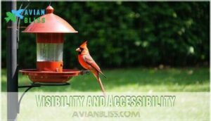 When setting up your cardinal feeder, focus on clear sightlines and an open design for visibility.
