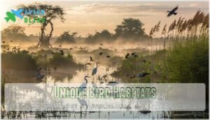 Each habitat offers unique microclimates and food sources, drawing in rare species, so whether you’re a seasoned birder or just starting, these hotspots promise surprises at every turn—just wait until you see what’s next, with each location providing a unique experience in these wild mix of environments.