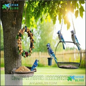 Strategic feeder arrangements benefit both birds and your viewing experience: