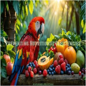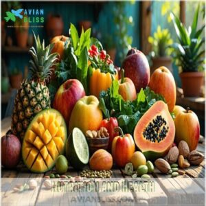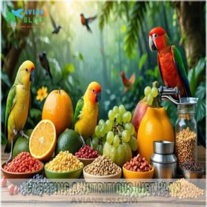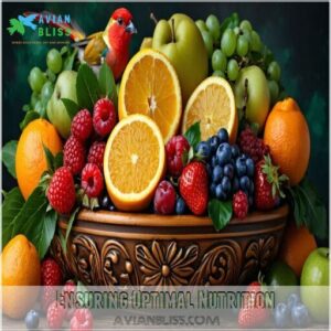 Weight monitoring helps guarantee your feathered friend stays in peak condition. Remember, prime bird nutrition isn’t just about preventing problems—it’s about creating thriving avian companions.