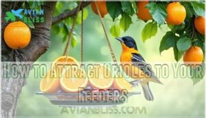 Build your oriole paradise with smart feeder placement, fresh treats, and patience – these vibrant visitors are worth the wait.