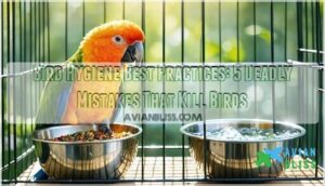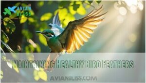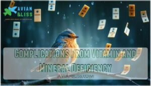 Watch for deficiency symptoms like dull feathers or behavioral changes that signal vitamin deficiencies. Individual variation means each bird’s needs differ, so supplement timing and bird feather nutrients require careful consideration.