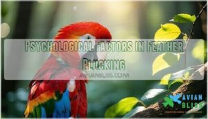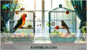 Stress and plucking often go hand-in-hand when birds face routine changes or social isolation. Boredom’s impact creates destructive behavior patterns, while anxiety manifests through repetitive plucking.