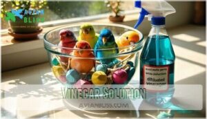 White vinegar creates a powerful yet gentle cleaning solution for bird toy disinfection. Mix one part vinegar with two parts water for effective vinegar dilution that kills 82% of household germs.