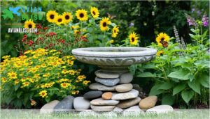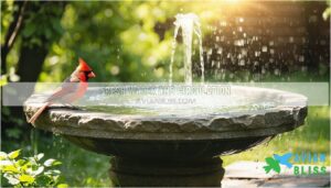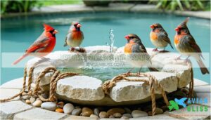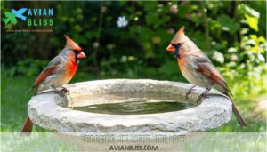 The perfect bird bath transforms your yard into a vibrant oasis, attracting cardinals with clean water, safety, and natural charm.