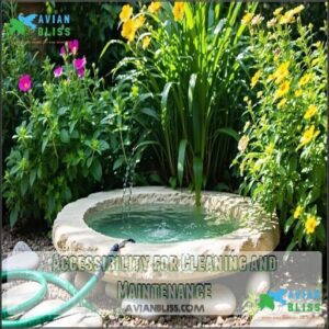 Plan for winter access if freezing is an issue. A practical bird bath design in reach of cleaning tools will save time and keep birds healthy year-round, ensuring easy access to maintain a clean environment.