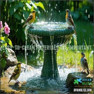 An easy clean bird bath starts with choosing materials that mean business—think durable, stain-resistant finishes that stop grime in its tracks.