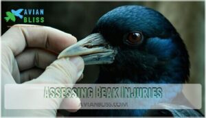You’ll need to assess the beak injury carefully, considering the severity, location, and effect on eating and drinking.