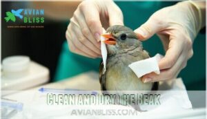 Then use safe drying methods to prevent infection, monitoring cleanliness closely, a key step in beak injury treatment.