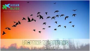 These phenological shifts in bird behavior guarantee they sync with the yearly cycle, proving nature’s knack for survival strategies in every season, and whether it’s timing migration or nesting, adaptability defines bird behavior patterns.