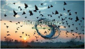 You’ve seen birds move together like synchronized swimmers, right? That’s flocking behavior. It boosts survival by improving predator avoidance and foraging benefits.