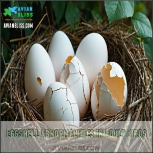 As you observe eggshell abnormalities in adult birds, note these signs: