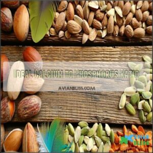 You’ll want a calcium-to-phosphorus ratio of 2:1 for your bird’s diet, ensuring proper calcium and phosphorus balance for strong bones and healthy calcium metabolism.