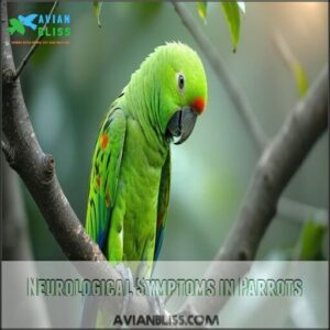 You’ll see neurological symptoms in parrots with calcium deficiency, such as seizures, ataxia, and tremors, due to nerve damage.