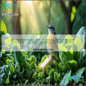 You can prevent calcium deficiency in your birds by providing a balanced diet that includes calcium-rich foods, such as dark leafy greens and cuttlebone.