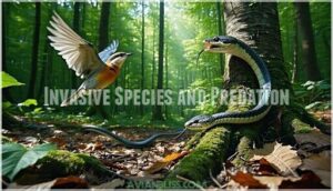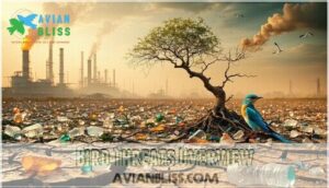 You’ll find that birds face multiple threats including habitat destruction, climate change, pollution, and invasive species that have led to a 30% decline in North American bird populations over the last 50 years.