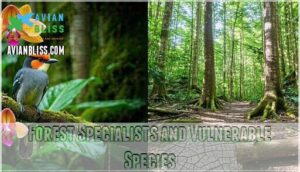 You’ll find these species particularly vulnerable to habitat fragmentation and deforestation impact.