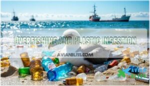 Fisheries depletion removes essential food sources for seabirds that rely on fish to survive. You’ll find that overfishing has pushed species like albatrosses to the brink of extinction.