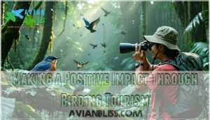 Through your lens and binoculars, you’ll transform birdwatching tourism into a conservation powerhouse by maintaining proper viewing distance and minimizing disturbance to wildlife.