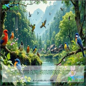 They also boost local economies through birdwatching, which generates billions of dollars and supports millions of jobs annually, contributing to a significant economic impact through ecosystems.
