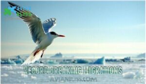 You’ll be amazed at the extraordinary feats birds accomplish during migration, with Arctic terns flying over 49,700 miles annually between the Arctic and Antarctic.