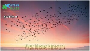You’ll find that birds migrate to secure ideal breeding grounds with fewer predators, ensuring their offspring have the best chance at survival when they hatch.