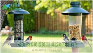 You’ll discover that choosing the right feeder type depends on which birds you want to attract and your specific backyard conditions.
