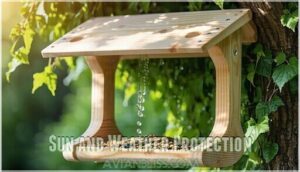 Position feeders where morning sun reaches them but afternoon shade protects against harsh heat, ensuring ideal bird feeder weather protection with proper drainage solutions.